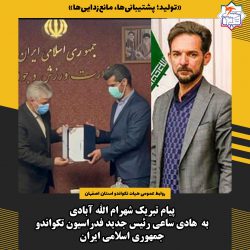 شهرام الله آبادی رییس هیات تکواندو استان اصفهان طی پیامی انتصاب هادی ساعی به عنوان رییس فدراسیون تکواندو جمهوری اسلامی ایران را تبریک گفتند متن پیام به شرح زیر است:...