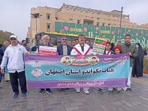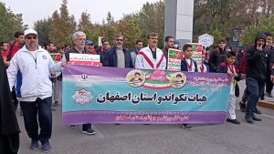 راهپیمایی روز 13آبان روز دانش آموز و مبارزه با استکبار با حضور پرشکوه ورزشکاران مخصوصا تکواندو کاران و مسیولین هیأت تکواندو استان اصفهان: یدالله رضوانی نایب رئیس هیأت تکواندو استان اصفهان جواد ابن یمین دبیر هیات رضا سالم رئیس کمیته روابط عمومی و بقیه اساتید بزرگ تکواندو