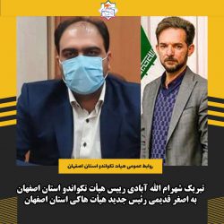 به گزارش روابط عمومی و امور بین الملل هیات تکواندو استان اصفهان، شهرام الله آبادی رئیس هیات تکواندو استان اصفهان انتخاب اصغر قدیمی را به عنوان رئیس هیات هاکی استان...
